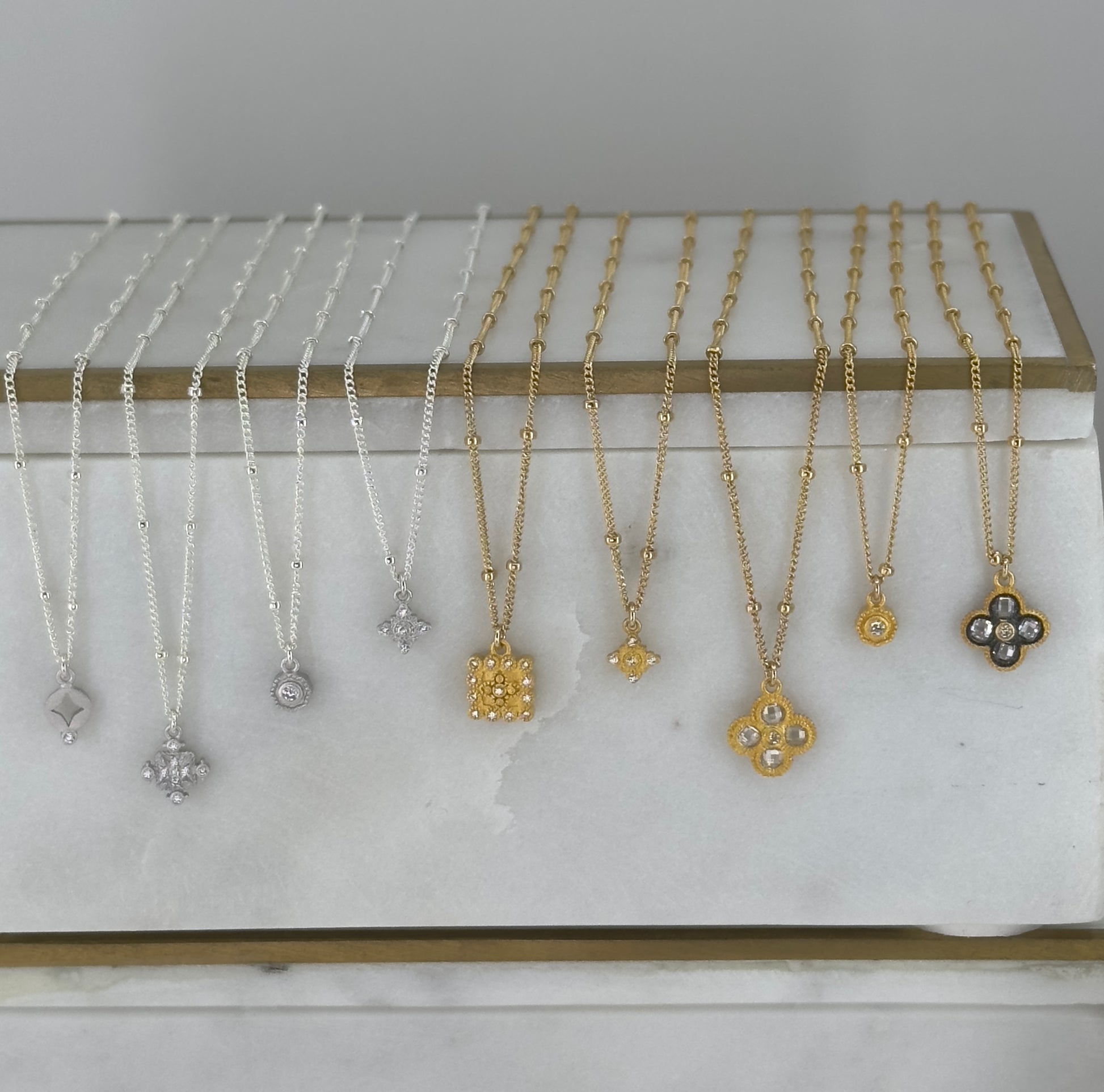 Minimal yet striking, the Moroccan Key Necklace features a delicate silver pendant inspired by classic Moroccan design elements. Suspended on a beaded chain, it’s an easy-to-layer piece that transitions seamlessly from casual to elevated looks.